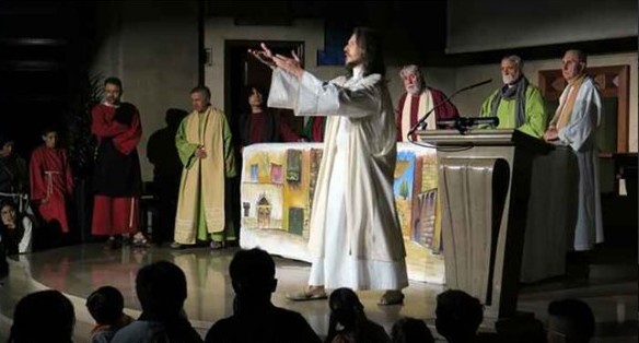 La Parròquia de Nostra Senyora del Carme de Lleida va acollir ahir Divendres Sant la representació de la Passió de Lleida, un text basat en la Passió de Cervera, que ha estat a càrrec de l’Agrupació Teatral TOAR.